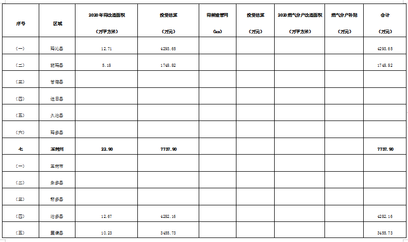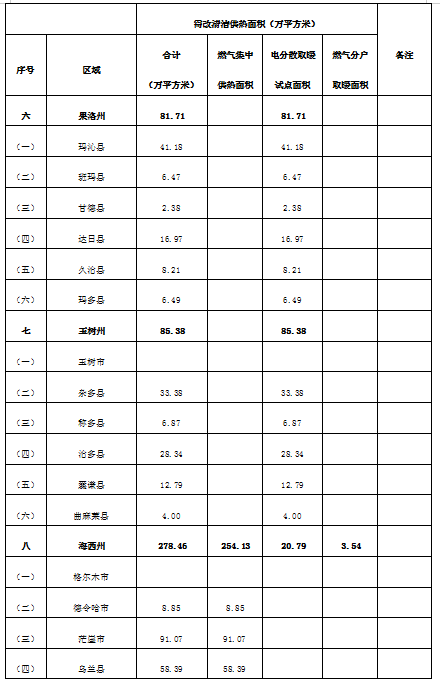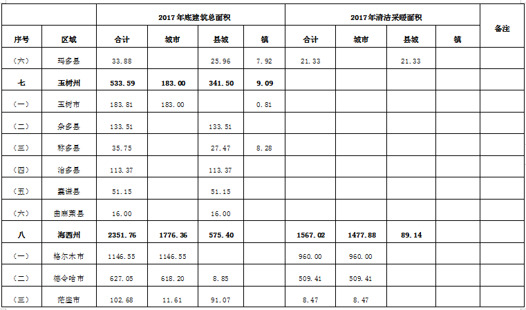 玉树市区采暖建筑面积183万平方米,无清洁取暖面积;