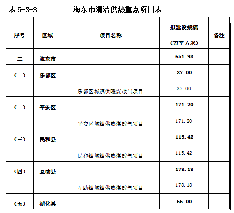 海东市区采暖建筑面积925万平方米,其中清洁取暖面积819万平方米,占现状采暖面积的88.56%;非清洁取暖面积106万平方米,占现状采暖面积的11.44%;