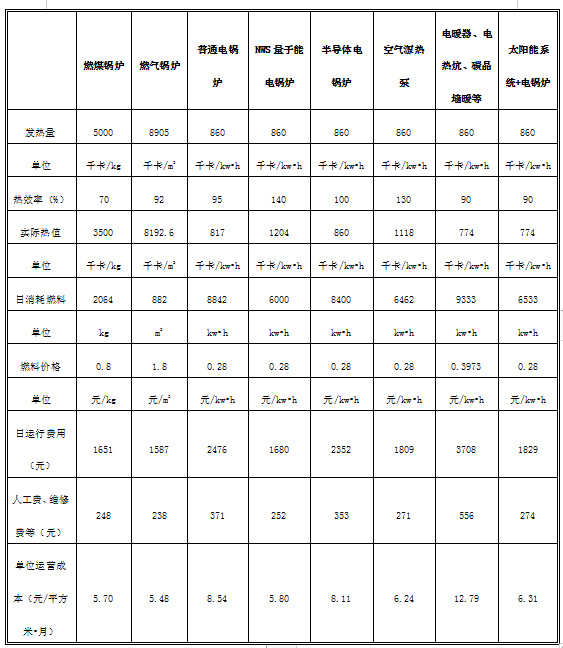 目前我省采用燃气采暖的平均价格水平在5~5.5元/平方米·月之间,燃煤采暖的平均价格水平在4.2~6元/平方米·月之间,燃煤和燃气采暖平均价格水平相当,农村牧区取暖平均价格4.0元/平方米·月,该价格水平也形成了城市居民和农牧区群众心理能承受价格。在不具备燃气采暖的条件下,如改为电采暖方式,按目前电价价格水平计算,根据电采暖形式不同(NWS量子能电锅炉、空气源热泵、太阳能系统+电锅炉、电暖器、电热炕、普通电锅炉),运行成本5.80~12.79元/平方米·月。采用电采暖成本要高于燃煤取暖价格,若无取暖价格补贴或优惠的电价补贴政策,用户接收程度较差。