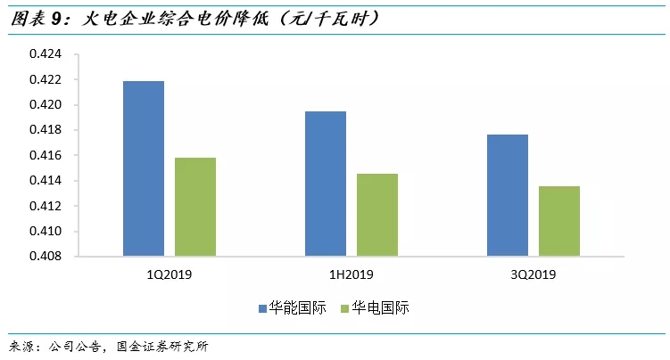 综上所述,我们认为明年新增市场化电量会导致火电综合电价降幅约1%左右,具体降多少要看各省新增市场化用电量比例。以2019年为例,华能国际、华电国际综合电价下降分别为4厘、2厘。