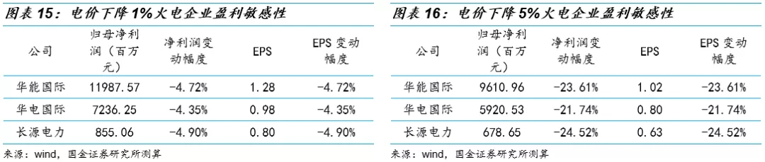 我们对市场典型火电企业做出的详细敏感性测算同样验证了这一点。火电企业在电价下降1%情况下损失的利润,基本与动力煤价下降10元/吨增加的利润相当。
