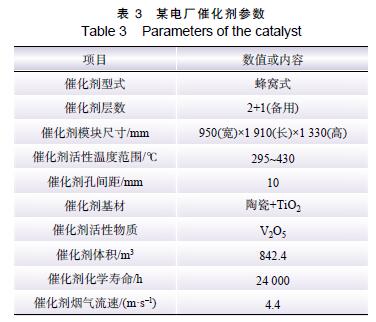 平板式催化剂在防止飞灰堵塞、抗磨损和抗中毒等方面具有很大的优势[19],2014 年6 月某电厂将原蜂窝催化剂更换为板式催化剂,板式催化剂参数如表 4 所示。