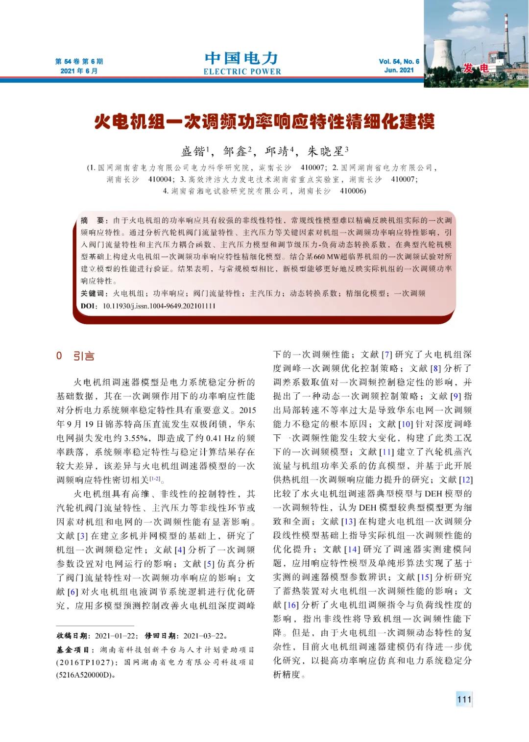 SHENG Kai, ZOU Xin, QIU Jing, et al. Refined modeling for power response acteristic of thermal power unit under primary frequency control[J]. Electric Power, 2021, 54(6): 111-118, 152.