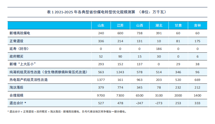 《报告》结合不同省份的实际情况,给出了不同的煤电优化方案。