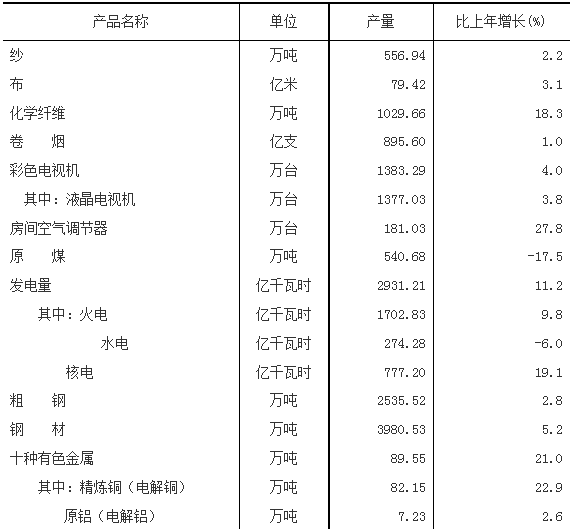 全年全部工业增加值17787.60亿元,比上年增长9.0%。规模以上工业增加值增长9.9%。其中,轻工业增长10.8%,重工业增长9.0%;采矿业下降8.8%,制造业增长10.0%,电力、热力、燃气及水生产和供应业增长13.4%。工业产品销售率96.47%。