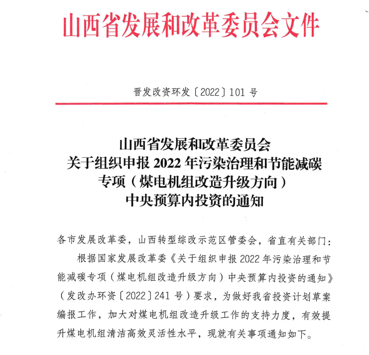 山西省近日发布关于组织申报2022年污染治理和节能减碳专项(煤电机组改造升级方向)中央预算内投资的通知,加大对煤电机组改造升级工作的支持力度,有效提升煤电机组清洁高效灵活性水平。优先支持大型风光电基地周边配套调峰的煤电机组改造项目。
