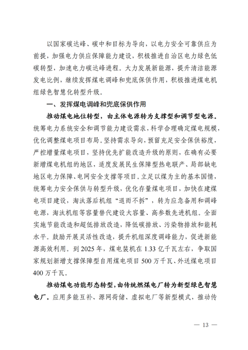 加速推进清洁低碳转型,新能源装机规模达1.35亿千瓦以上。其中,风电装机8900万千瓦左右,光伏发电装机4500万千瓦左右,光热发电装机60万千瓦左右,生物质发电装机80万千瓦左右。抽水蓄能开工建设120万千瓦。非化石能源占一次能源消费比重达到20%左右,新能源装机比重超过50%,新能源发电总量占总发电量比重超过35%。
