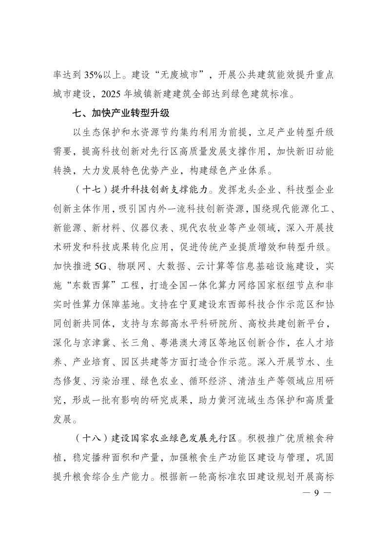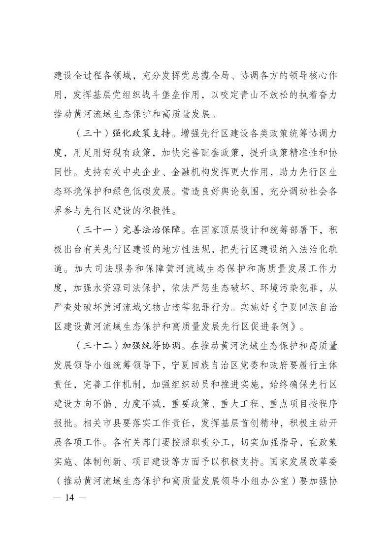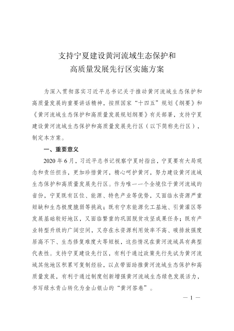 《支持宁夏建设黄河流域生态保护和高质量发展先行区实施方案》的通知