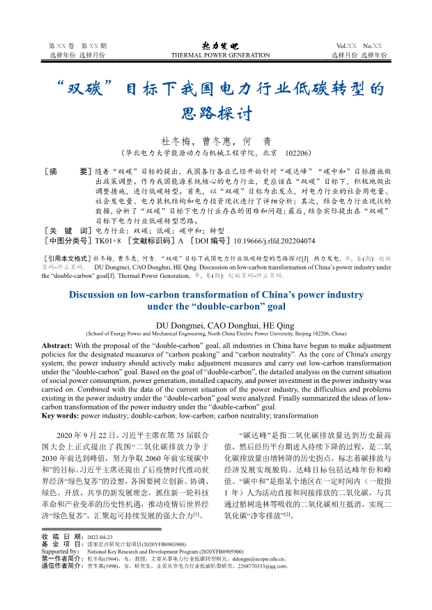 “双碳”目标下我国电力行业低碳转型的思路探讨
