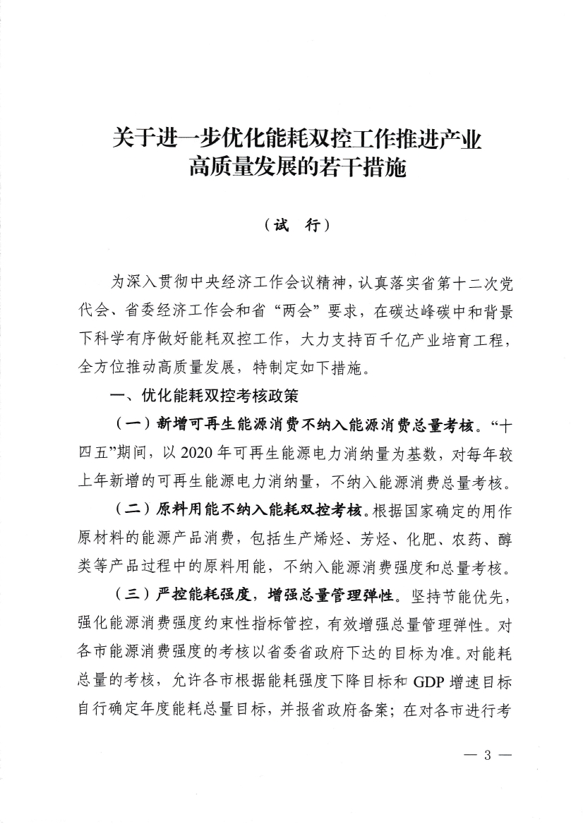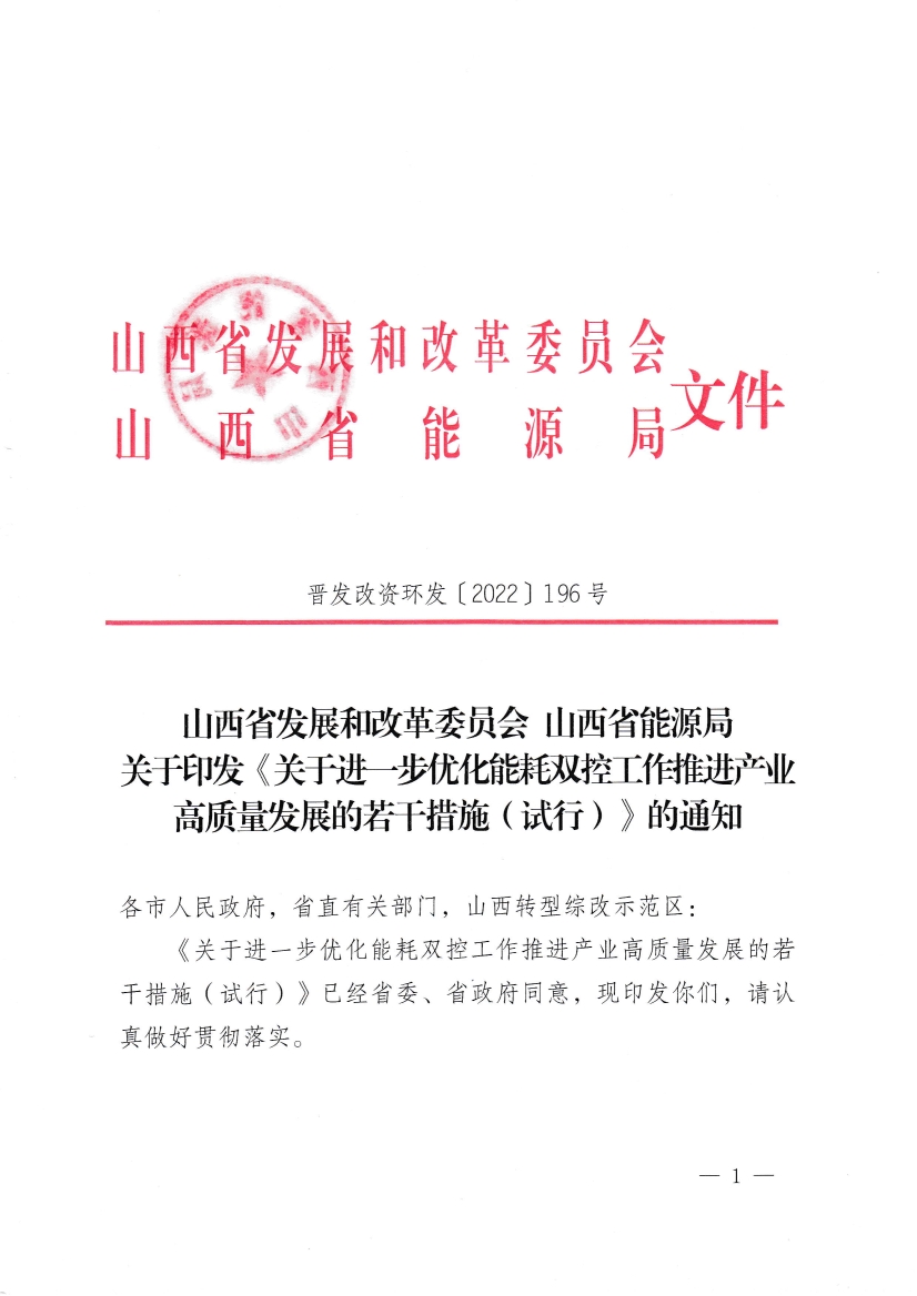 日前,山西印发《关于进一步优化能耗双控工作推进产业高质量发展的若干措施(试行)》,《措施》指出新增可再生能源消費不纳入能源消費总量考核。“十四五"期间,以2020年可再生能源电力消纳量为基数,对每年校上年新增的可再生能源电力消纳量,不纳入能源消費总量考核。做好重点行业节能改造工作。认真落实《山西省重点行行业能耗双控行动方案(2021-2025年)》,扎实开展煤电、焦化、钢铁、有色、建材、化工及煤炭洗选行业节能改造行动,有效降低能耗水平,为新兴产业发展腾出能耗空间。
