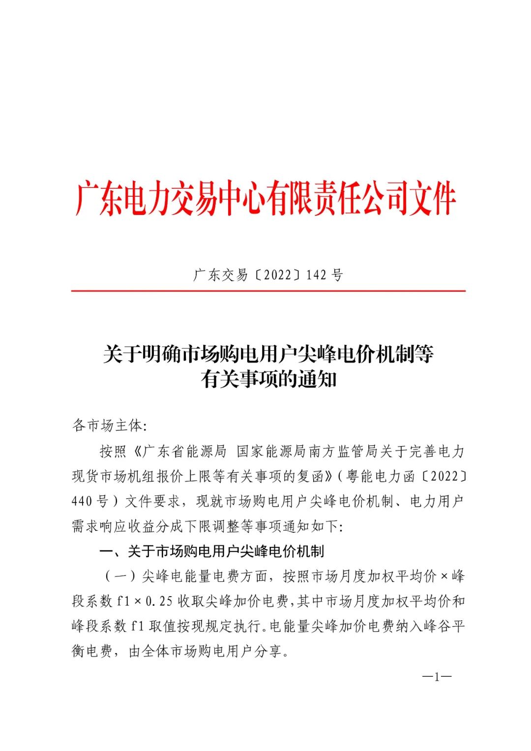 广东电力交易中心日前发布《关于明确市场购电用户尖峰电价机制等有关事项的通知》,就市场购电用户尖峰电价机制、电力用户需求响应收益分成下限调整等事项进行通知。