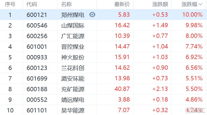 今天A股煤炭板块大涨,郑州煤电涨停,山煤国际接近涨停,广汇能源、晋控煤业、靖远煤电、兖矿能源、山西焦煤等纷纷跟涨。