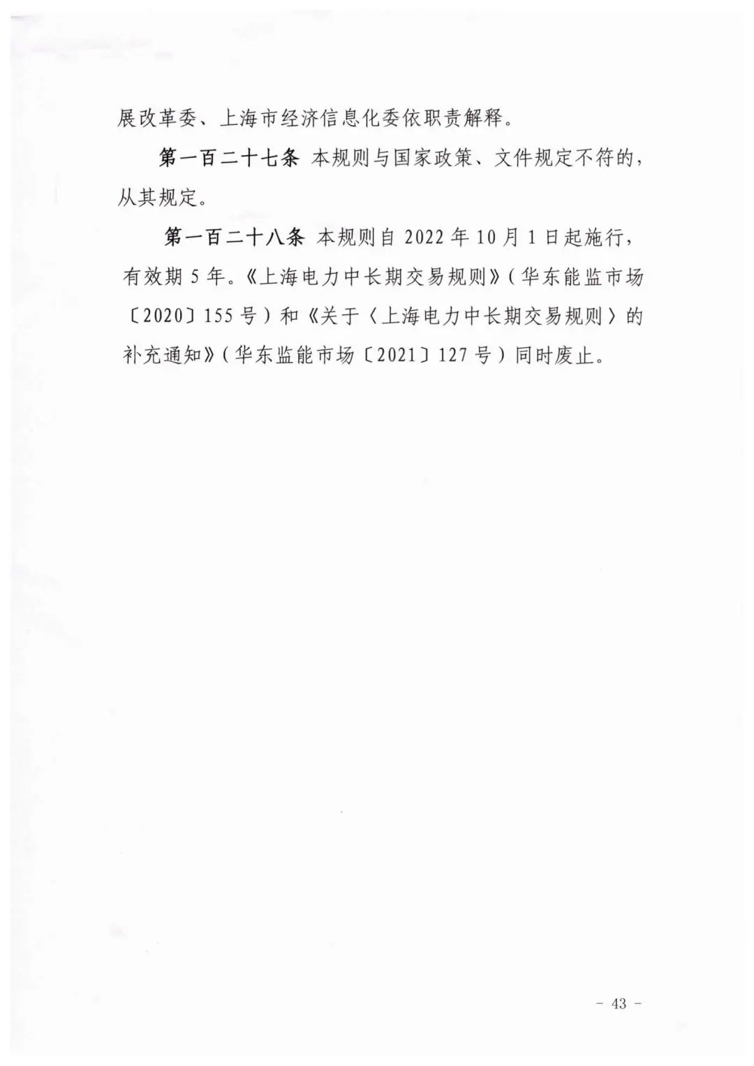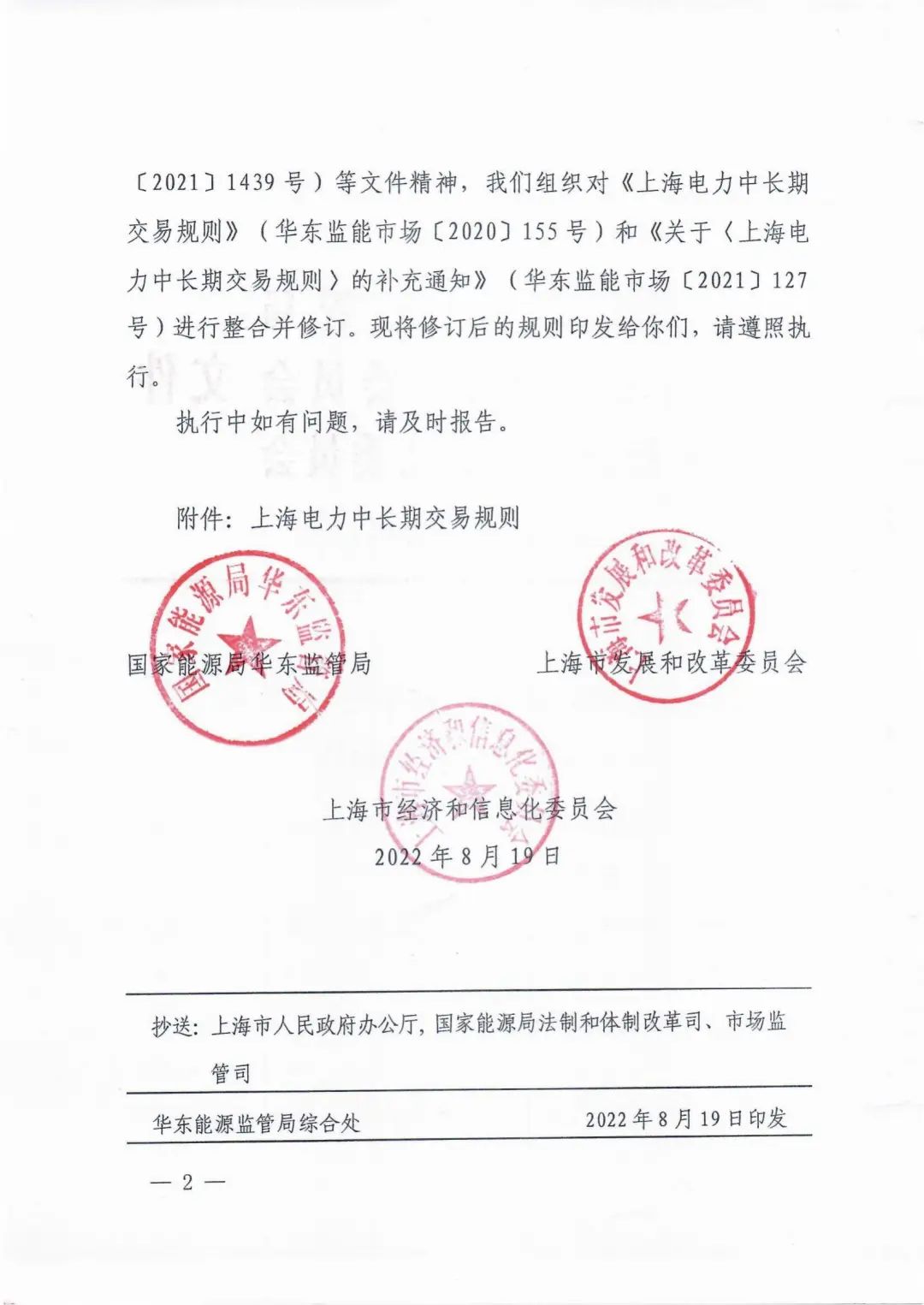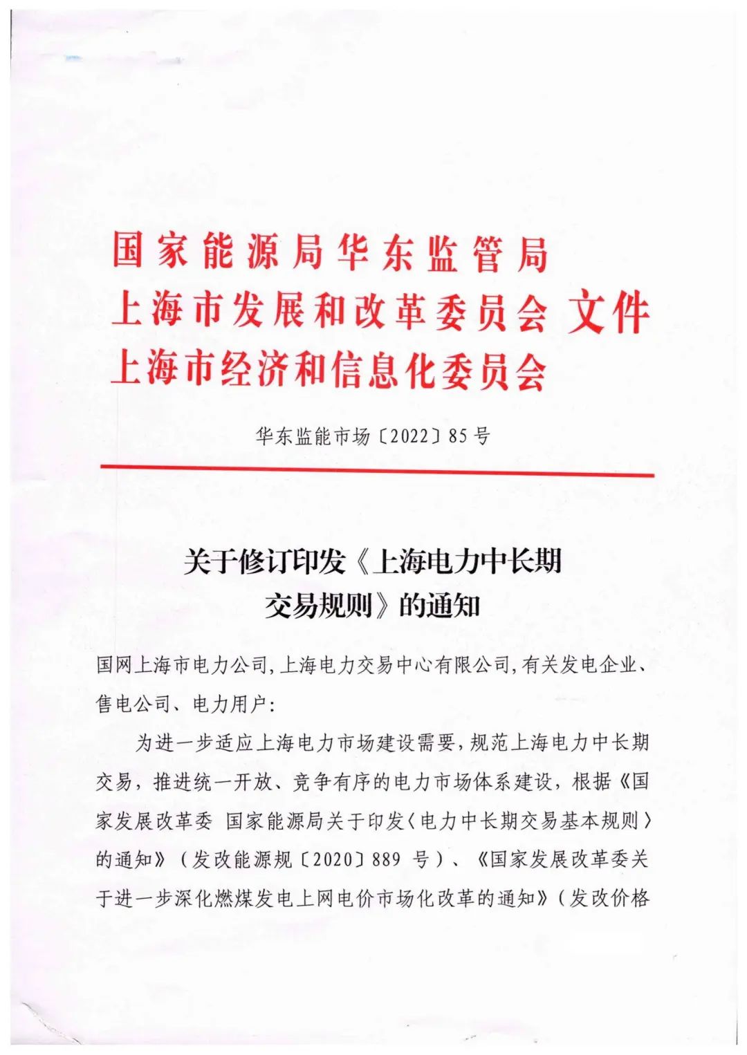 华东能监局9月19日公开发布关于修订印发《上海电力中长期交易规则》的通知(华东监能市场〔2022〕85号)。通知指出,上海市燃煤发电企业原则上全部进入电力市场。各类市场化交易在“基准价+上下浮动”范围内形成交易价格,燃煤发电企业交易价格上下浮动范围暂不超过20%,高耗能企业市场化交易价格不受20%限制。国家另有规定的随国家规定调整。规则自2022年10月1日起施行,有效期5年。