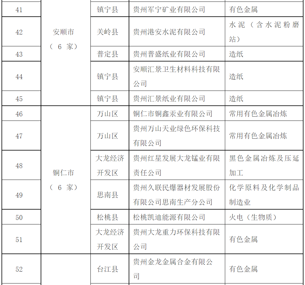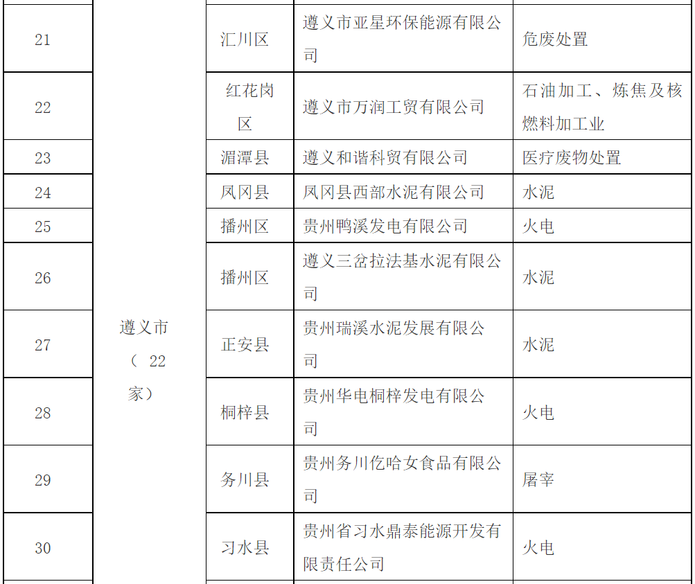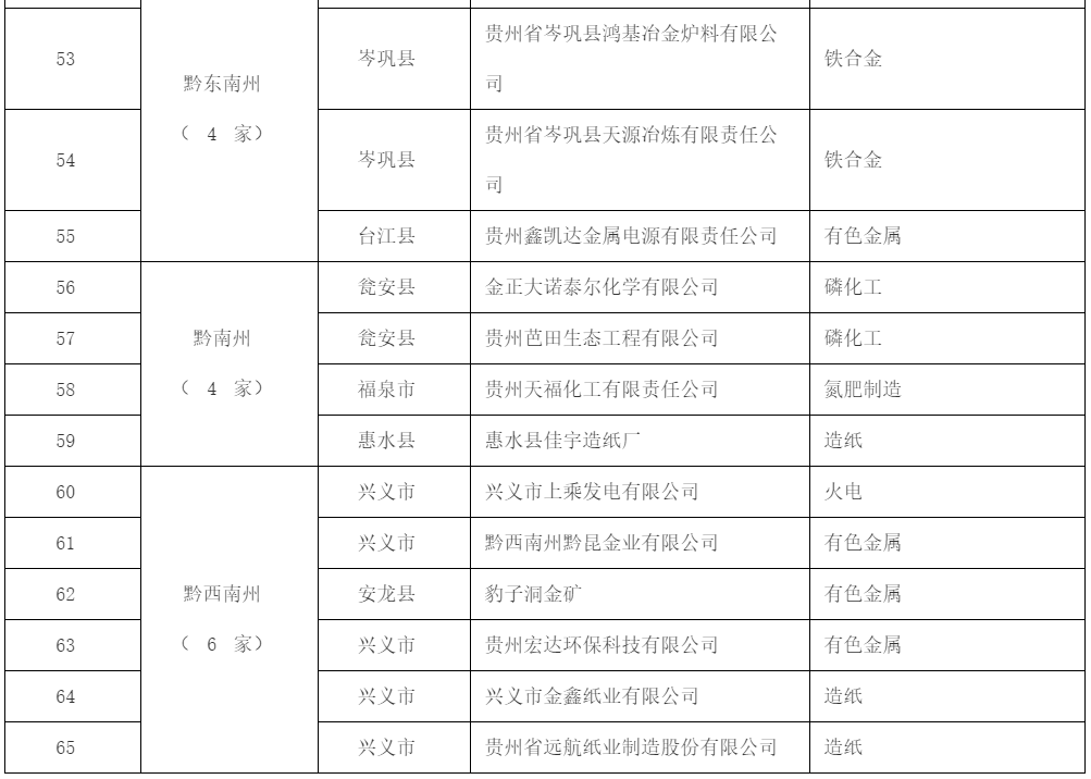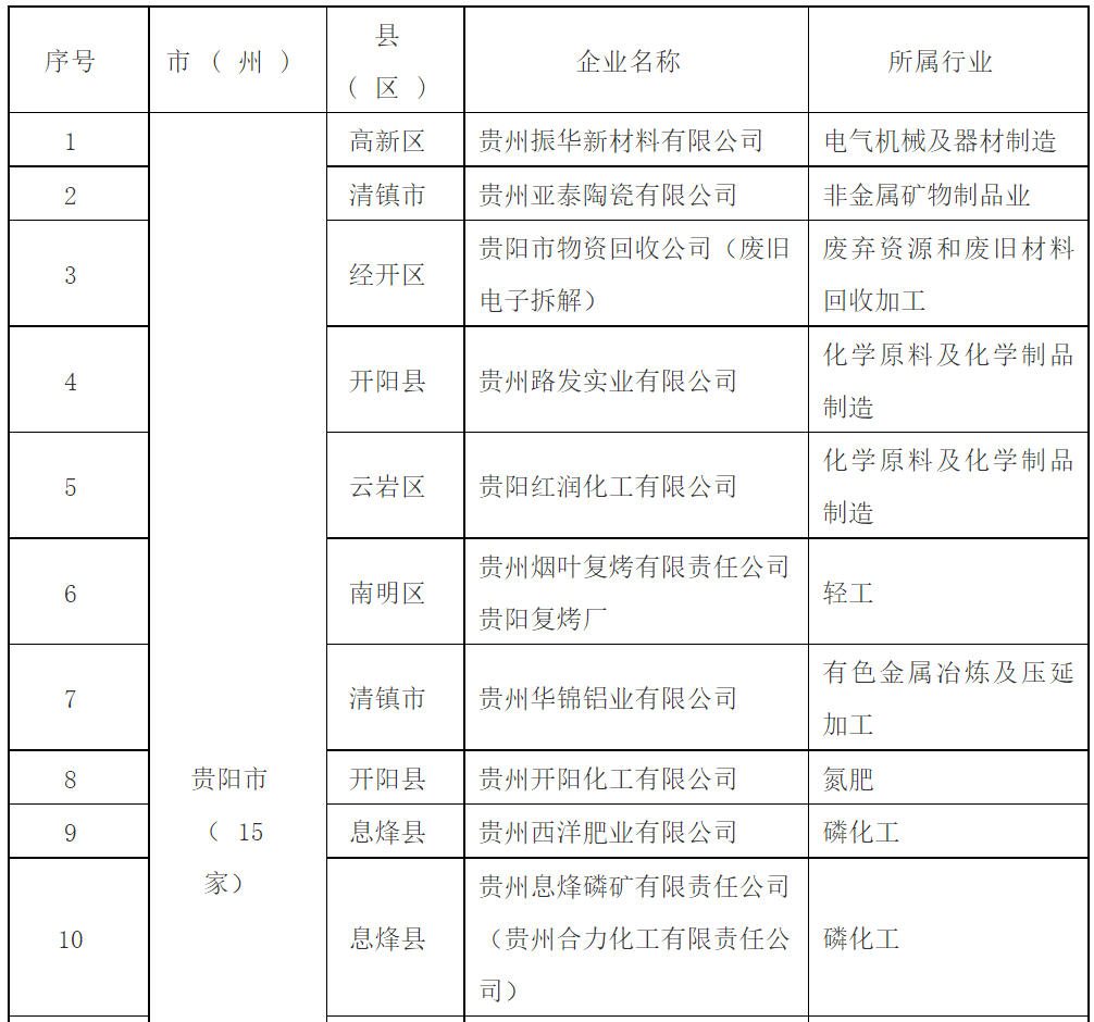 10月8日,贵州省生态环境厅公布2018年强制性清洁生产审核企业名单,共包含