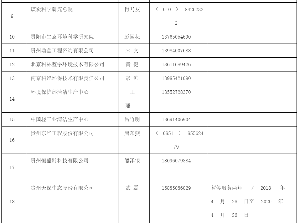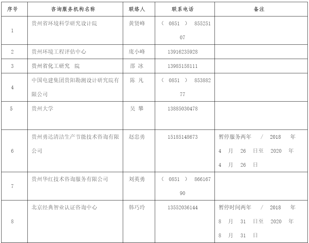 贵州省强制性清洁生产审核咨询服务机构名单