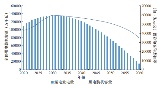 图3 全国煤电装机容量和发电量中长期变化趋势预测