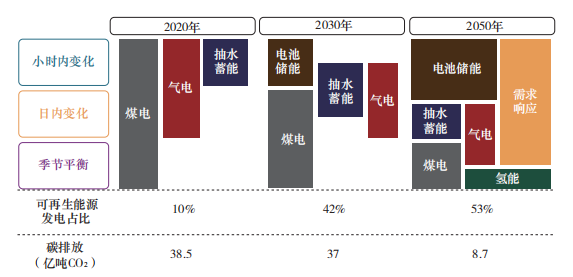 2035年以后,全国电力系统中保留相当规模的煤电机组,尤其是作为基础负荷的煤电机组具备较低碳排放水平,达到燃气发电机组排放水平或零碳排放。