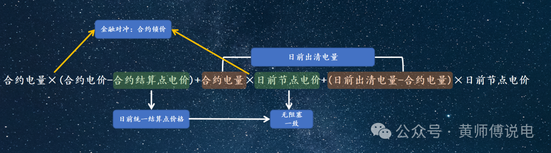这样不论是发电侧,还是用电侧,差价结算中的减数"合约结算价格"就与日前市场结算的节点价格一致,那么中长期合约电量就受到了合约价格的保护,实现了远期的金融对冲。