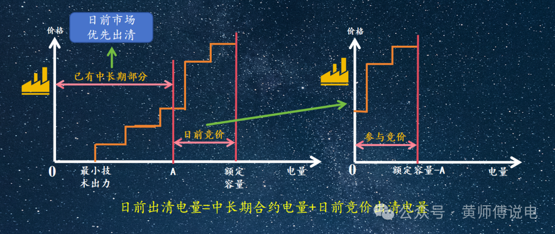 那么这部分电量优先出清后,剩余的用电增量用于源侧的竞价,参与竞价的发电量也是剔除掉中长期合约电量后的剩余发电能力。
