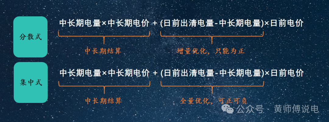 从这两段结算公式来看(忽略阻塞),虽然形式都是中长期合约电量×合约电价+(日前出清电量-中长期合约电量)×日前电价。