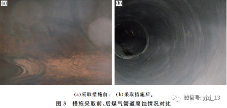 措施3:将喷淋塔位置由靠近煤气总管处移至干法除尘出口处,在降低煤气温度的同时,还可以去除大部分氯离子和酸性物质,从而保护煤气管道少受干法除尘带来的腐蚀影响。