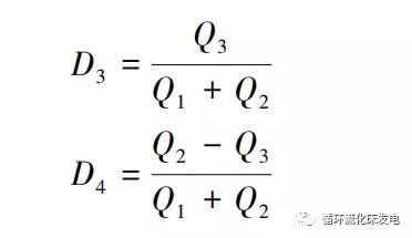 D3-第一层二次风率比;D4-第二层二次风率比。D3,D4的取值要根据煤质、锅炉运行稳定、蓄热能力、流化速度等进行确定。一次风量、一次风量加第一层二次风量与总风量的比,具体计算如下: